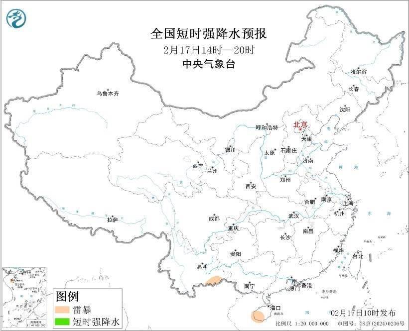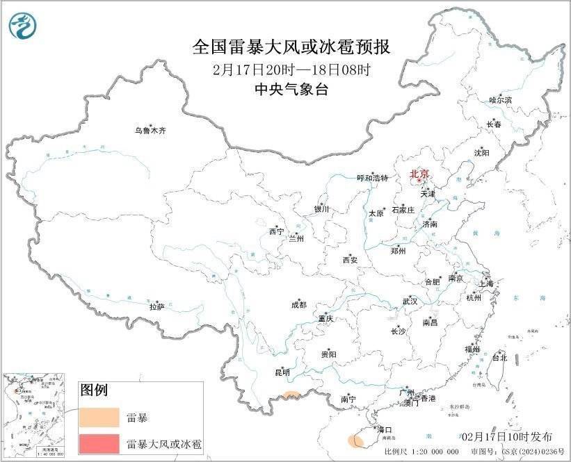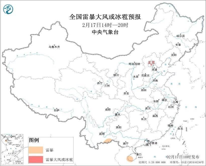 r展望2月17日14时至18日08时,云南东南部、海南岛西南部等地的部分地区将有雷暴天气。