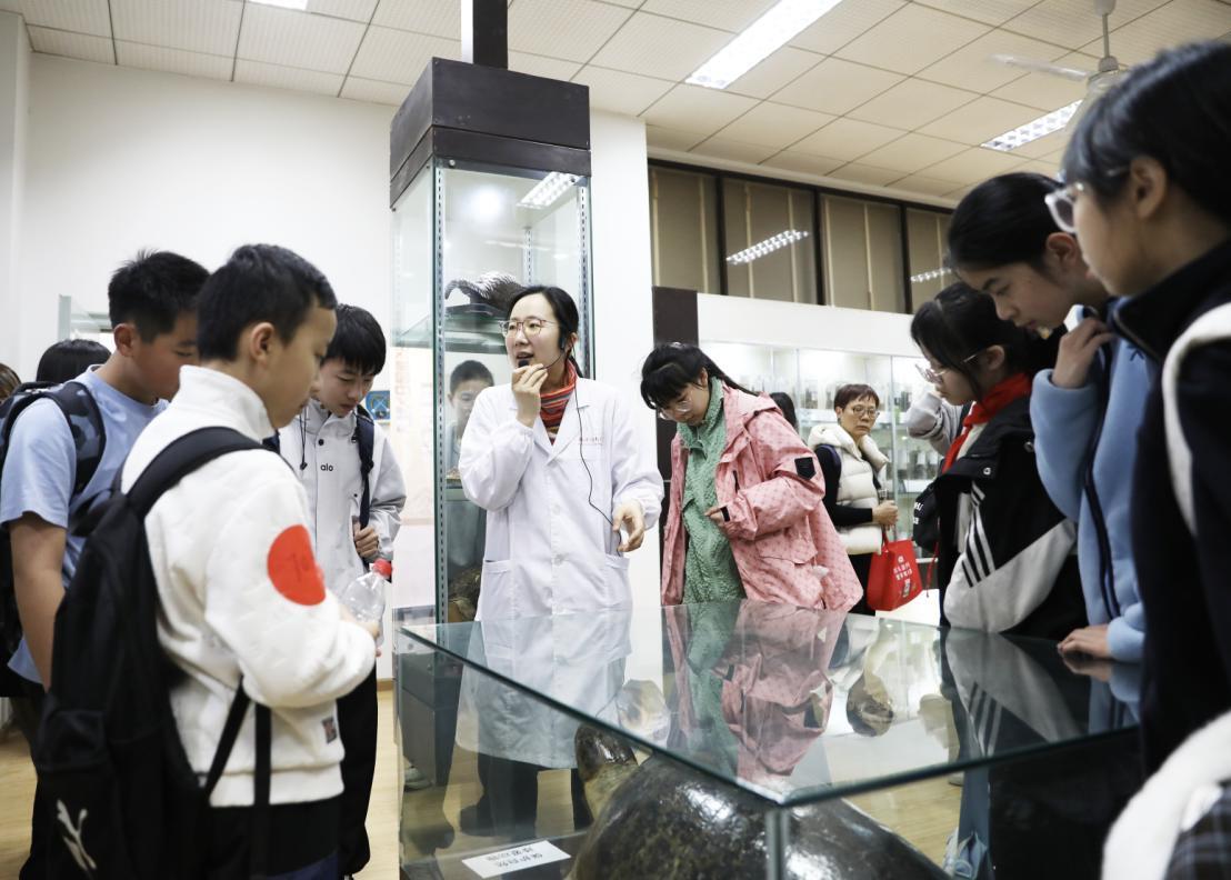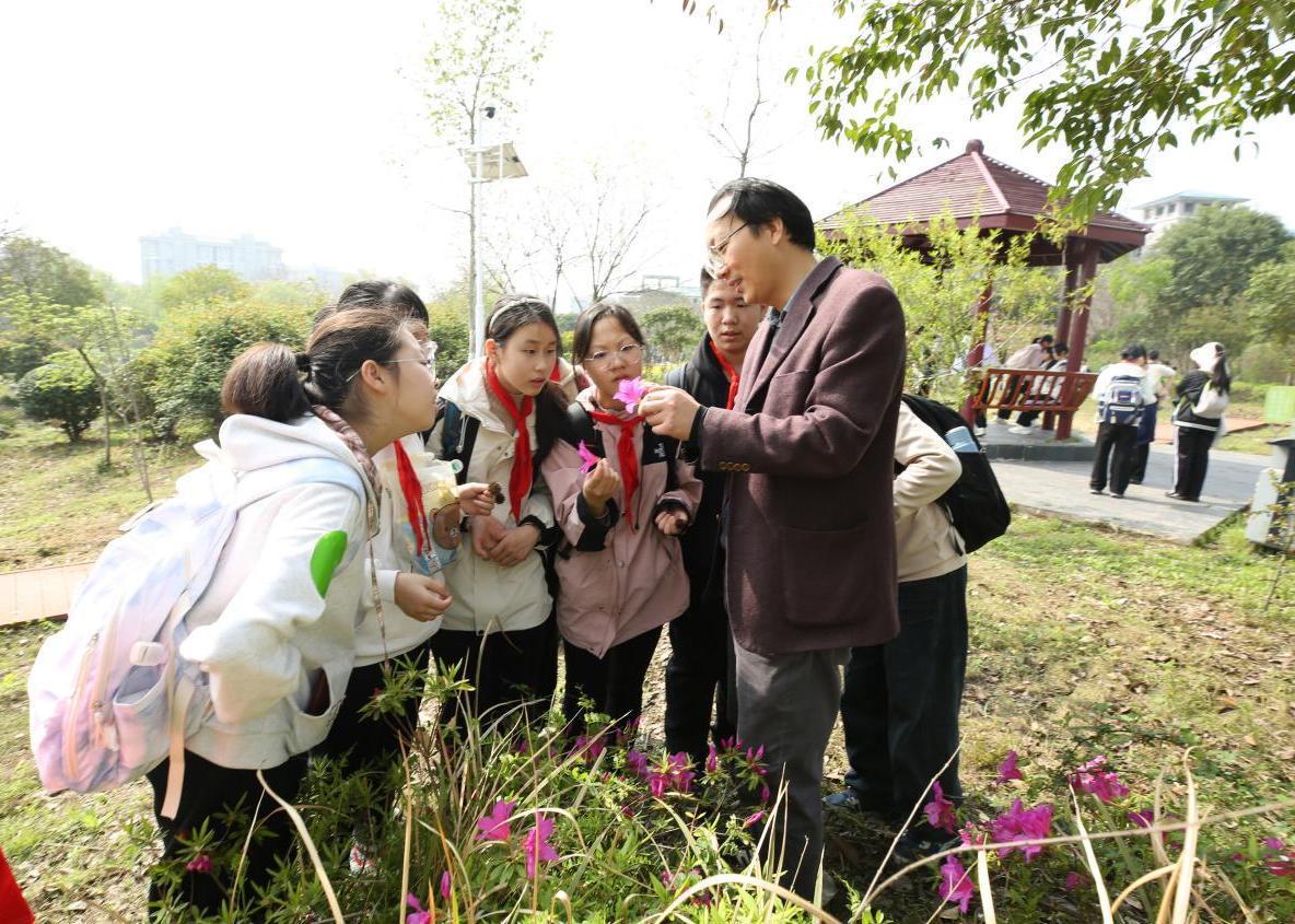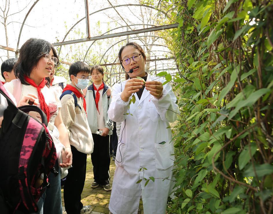 3月27日,春光明媚,湖北中医药大学黄家湖校区迎来了一批特殊的访客。来自武汉市粮说念街中学的七年纪整体师生,在这里开启了一场以“走进中医药·意志药用植物”为主题的千里浸式研学之旅。同学们穿梭于中药标本馆、药用植物园等地,凝听行家讲座,还惊喜地看到机器东说念主打起了太极拳,在寓教于乐中感受中医药文化的博大深湛。本次行径由湖北中医药大学药学院、湖北省中病院(湖北中医药大学从属病院)儿科纠合武汉市粮说念街中学开展。湖北中医药大学副校长刘建忠,粮说念街中学副校长江黛出席行径。