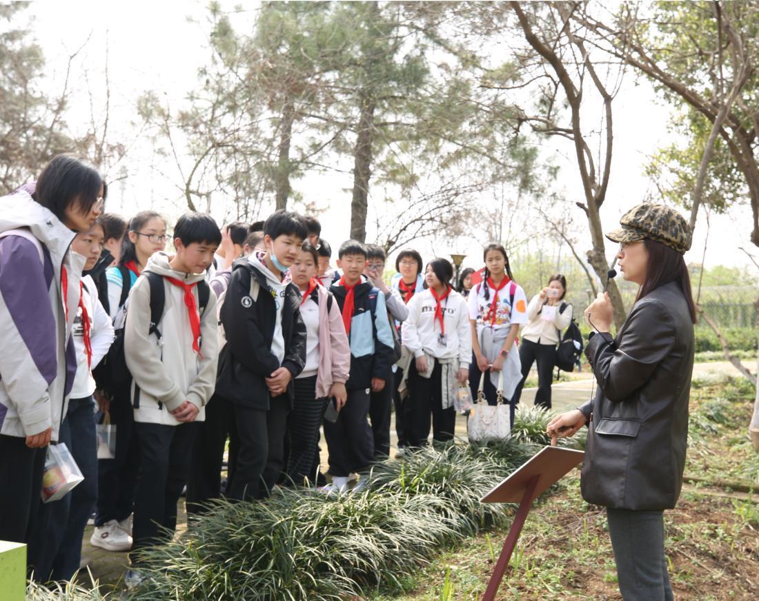 离开标本馆后,同学们来到勃勃盼望的药用植物园。这里引种了600余种药用植物。偶合仲春,园内绿意盎然,各式植物竞相孕育。