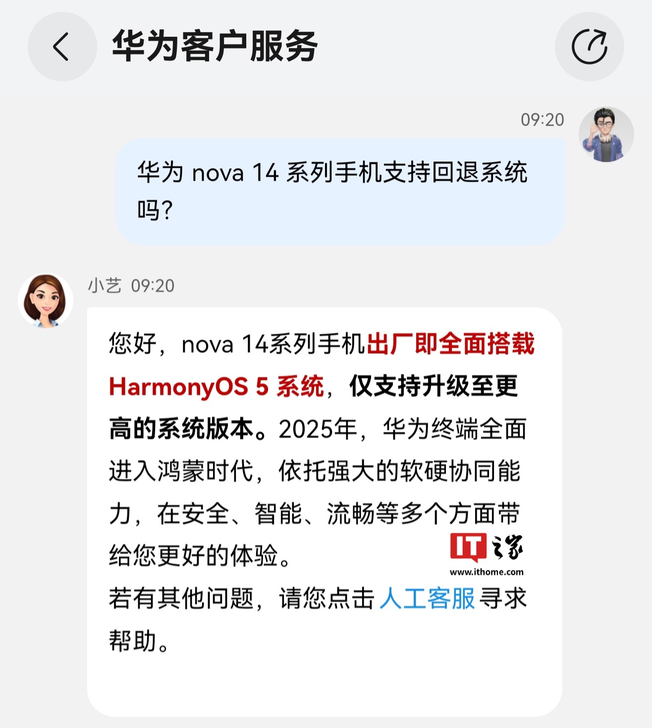 IT之家从华为客户做事获悉,nova 14 系列手机出厂全面搭载 HarmonyOS 5 系统,仅接济升级至更高版块,官方回收复文如下: